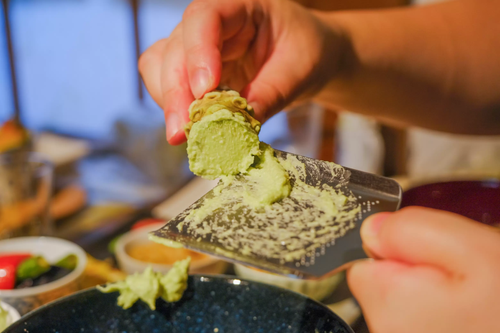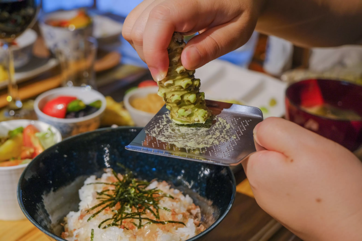 โดยจะขูดวาซาบิโดยตรงบนข้าวที่จะทาน รสชาติที่ได้จะไม่ใช่ความเผ็ดรุนแรงแบบฉุนจมูก แต่เป็นความหวานละมุนและรสลึกที่ค่อย ๆ กระจายไปบนลิ้น ทำให้คุณประหลาดใจแน่นอน