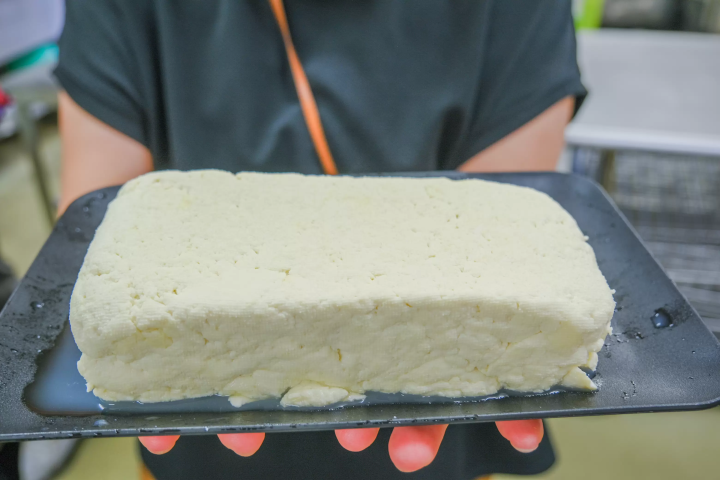 เมื่อเต้าหู้จับตัวแข็งแล้ว จะนำไปใส่ในพิมพ์เฉพาะเพื่อขึ้นรูป