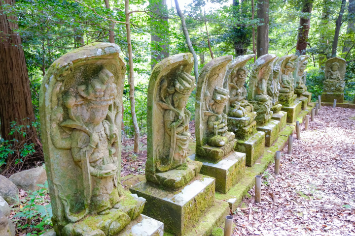 ที่ศาลเจ้าย่าชิโมะฮาระในสวนธรรมชาติชูเซ็นจิ มี “สามสิบสามพระโพธิสัตว์กวนอิม” ซึ่งเชื่อกันว่ามีรูปร่างเปลี่ยนไปตามผู้ที่มองหรือสวดมนต์